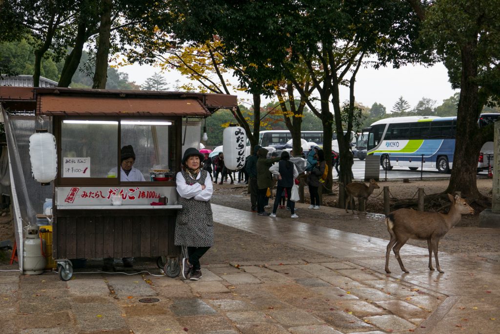 Vissza is tértem pár nap múlva és bemerészkedtem az erdőbe. Nara még arról is híres hogy szabadon mászkálnak a szarvasok. Igen, szarvasok. Gondoltam látok majd párat téblábolni, mint egy rosszul sikerült vadasparkban. Beugrottam egy boltba venni valami rágcsát, és amint kiléptem ott állt velem szemben egy szarvas. Nem tudom melyikünk volt jobban megilletődve, de én lemerevedtem. A szemem sarkából azért próbáltam figyelni, hátha rohan felénk egy vadőr, kezében altató puskával, mert az hétszentség hogy nem normális hogy a járda közepén a buszmegállóban áll egy szarvas. De, normális. Várta a buszt. Tutira. Nyilván nem azért mert azzal jár haza hanem mert azzal jönnek a túristák és ők adják a kaját. Nyilván rájöttek a trükkre. Van egy erdő ami tele van szarvasokkal. De rengeteg. A nap végére már idegesítettek, hogy kerülgetnem kell őket mint a túristákat. Jámbor marhák. Szent állatok, mint a tehenek Indiában, szóval több joguk van mint a kétlábúaknak. És össze vissza kóringyolnak, nem csak az erdőben, hanem az utcákon, tereken, parkokban. Rájöttek nyilván, ha kimerészkednek az erdőből akkor hamarabb lesz vacsi. Simogatni is lehet őket meg minden. Én úgy vagyok hogy amit látok és szimpi azt megkóstolom és most nem a szarvasokra gondolok. Ugye a legjobb kaját mindíg az olcsó utcai árusoktól lehet szerezni. Na abból itt is volt dögivel. Kekszféle dolgokat lehetett kapni. Vegyünk. Száraz ízetlen vacak. Mindegy, ez is japán. Mindenhol ki van táblázva hogy ne etessük az állatokat. Persze mindenki etette a szarvasokat. Hülye túristák, hátnemmegvanmondva hogy ne etesd az állatokat! Nade. Mindenki azzel a kekszel etette őket amit én is rágcsáltam. Hmmm. A többit nem részletezem, de a maradék kekszemet nagylelkűen felajánlottam a padon, melletem ülő szarvaskölöknek. Persze később észrevettem, minden utcai árus mellett volt egy tábla egy szarvast ábrázoló képpel…