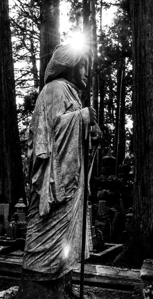 Ezen a helyen élt, és alapított pár templomot, egy Kobo Daishi nevu figura, aki megalapozta a japán buddhizmust. Ez a hely a buddhisták legszentebb helye. Hasonló Mekkához vagy akár Rómához is. Csak kisebb. Ezen kívül őt tartják a japán Leonardo DaVinci-nek is mert számos technológiai újítás fűzüdik a nevéhez, és többek között ő vezette be a katakana és hiragana írásmódot is ami ma alap. Konkrétan mindent ő csinált ami a mai Japán civilizációját meghatározza. A hely egyfajta zarándok út is. Találkoztam pár japán “el camino”-s figurával, akik pecsét helyett egy füzetbe kapnak áldást a helyi szerzetesektől. Sajna nem tudtam szerezni, mert csak zarándoknak jár. Lopni meg mégse akartam… A legenda úgy tartja, hogy a mai napig itt jár kel Daishi az erdőben. Nem jött velem szembe, de tényleg megfogott a hely. Ezt se fogom tudni leírni. Gyenge vagyok én ahhoz hogy visszaadjam milyen érzése ezer éves sírkövek között, egy több ezer éves erdőben sétálgatni. Szerencsére a túristák jobban el voltak foglalva a szállás megtalálásával, így tényleg volt időm kicsit egyedül lenni.